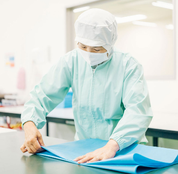 第二に、医療・衛生材関連事業。医療用不織布・フィルムを基材とした医療機器・衛生材料の調達・製造を行っており、医療現場を支える製品の安定供給に貢献しています。高度な品質管理体制のもと、OEM生産および自社オリジナル商品の開発・製造も行っており、医療機器製造業、第二種医療機器製造販売業の許可も取得しております。